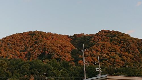 昨日は秋の行楽日和だったようで、多くの人が出かけていました。 青空が広がっていたので、その分夕暮れには きれいな夕焼けが辺り一面をオレンジ色に染めていました。 これはみかん山ではありません。紅葉でもありません。まだまだ緑の多く残る山です。 な…
